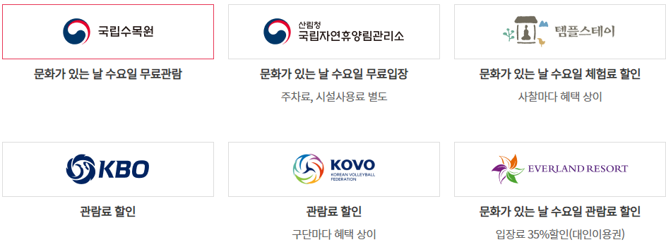 문화재, 스포츠시설 등 문화시설 할인,