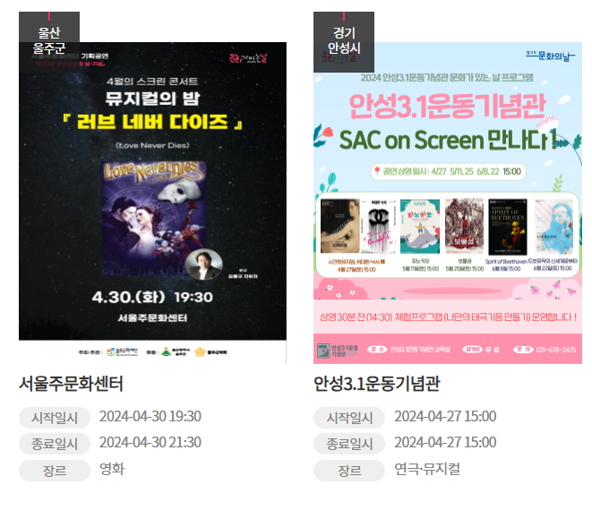 영화관, 공연장, 박물관, 미술관,