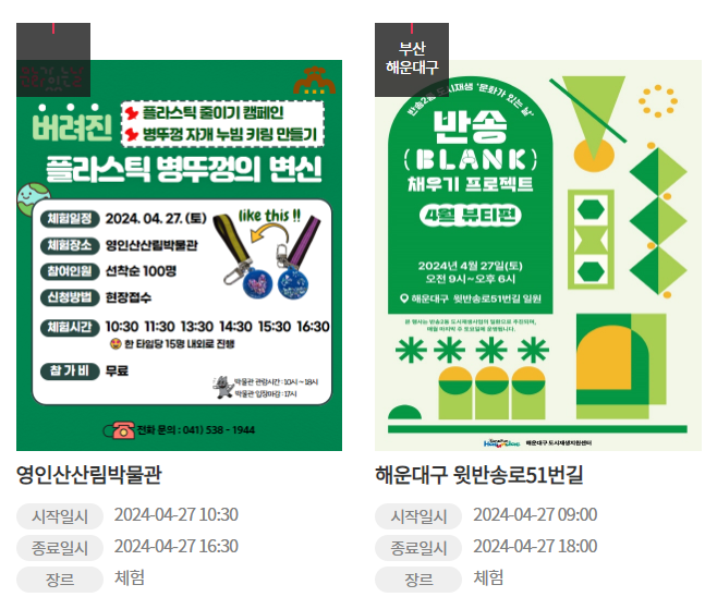 공연, 수목원, 휴양림, 야구장, 아쿠아리움