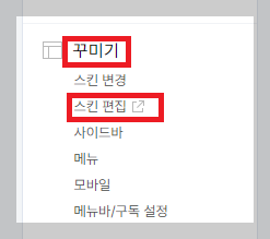 4. HTML 태그를 복사하여 티스토리 관리→꾸미기 →스킨편집으로 갑니다.