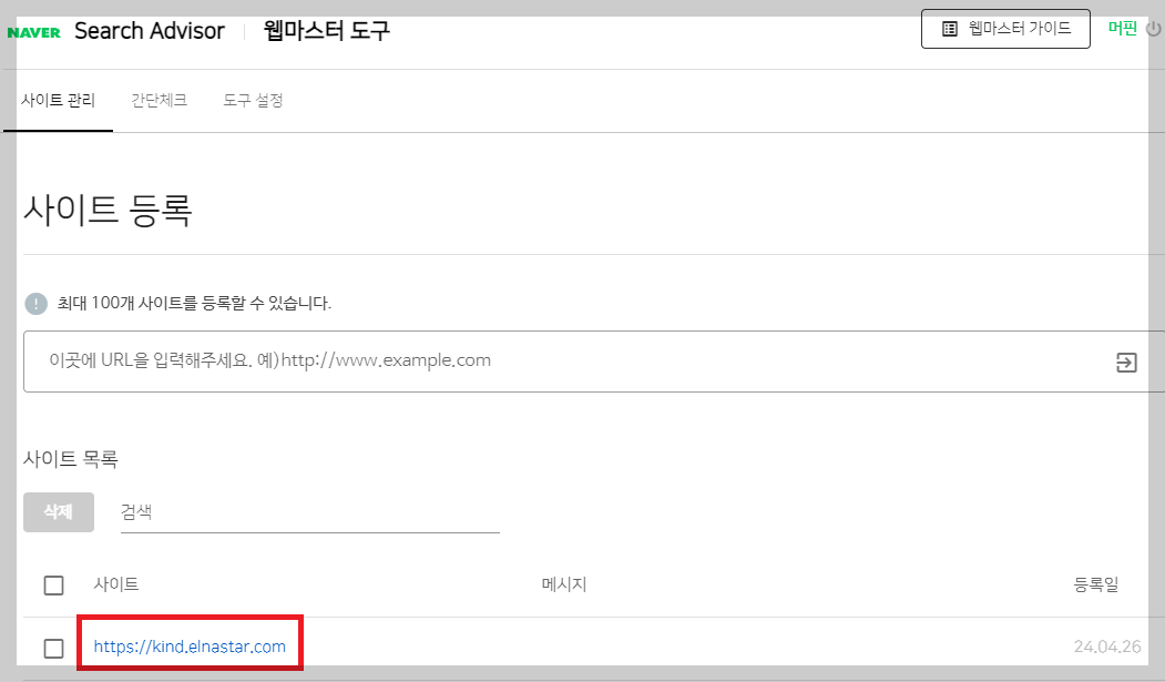 이제 네이버에 티스토리 블로그 주소 등록이 완료되었습니다.