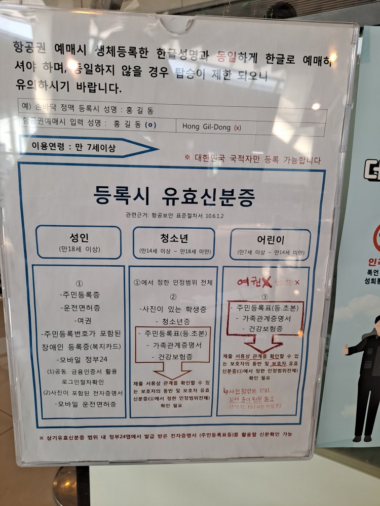 ▶ 미성년자 바이오정보등록은 위의 사진에 보이는 셀프등록대 앞에 있는 부스에서 직원의 도움을 받아 등록했습니다.