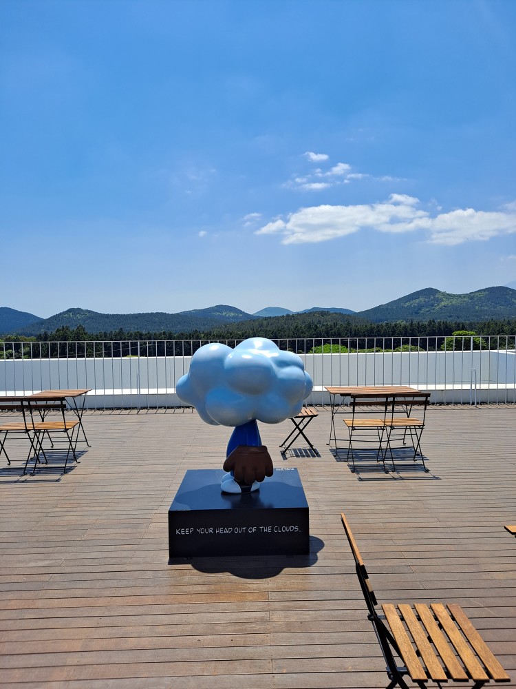 옥상에 올라가니 경치도 훌륭하고 캐릭터 조형물들도 있어서 한 컷~!
