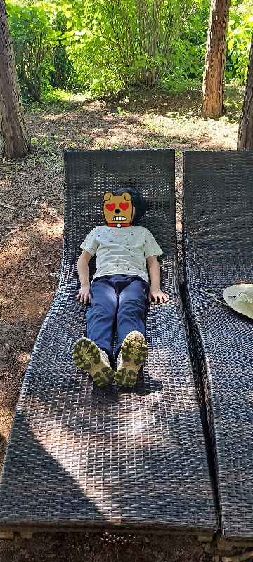조금 걷다 보니 시원한 숲 그늘에 썬베드가 쫘르륵 놓여 있었어요.