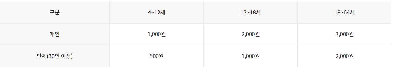 ▶ 청소년, 군인 (개인) 2,000원