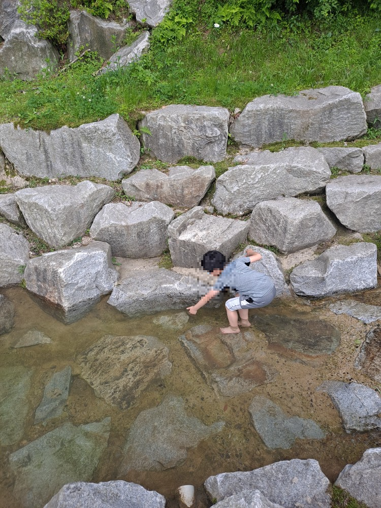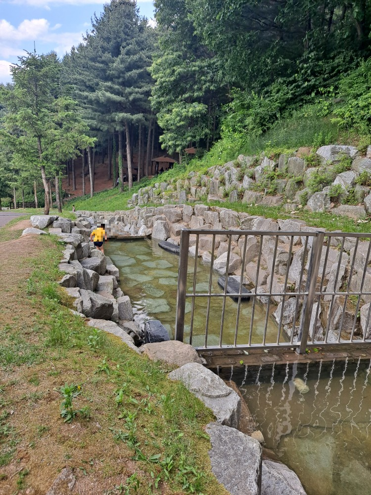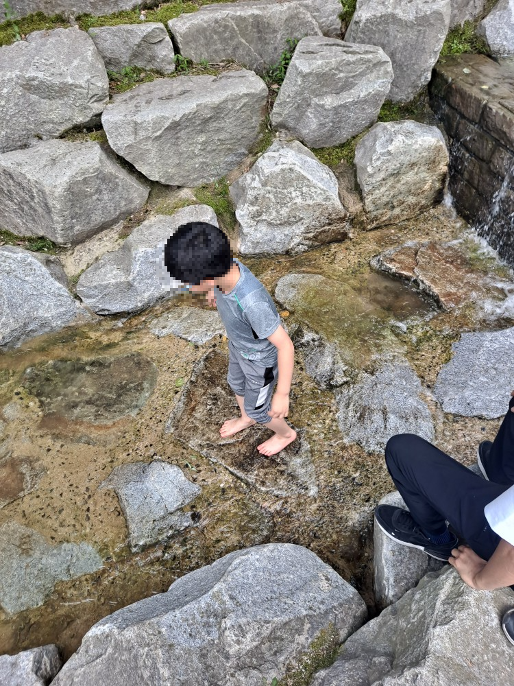 계곡물이 흘러내려 시원하게 발 담그고 놀 수 있는 공간도 있었어요.