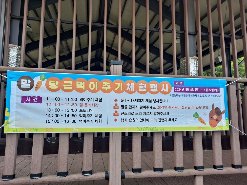 6월 중 방문했을 때 말 먹이주기 체험을 무료로 했어요.