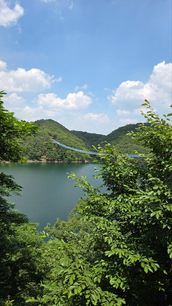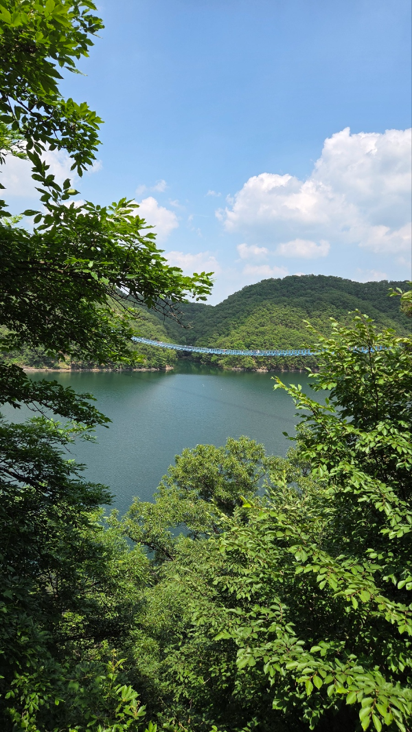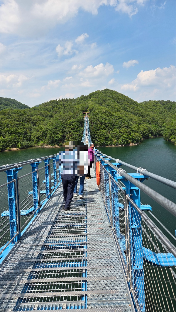 이곳은 초평호의 아름다운 풍경 위로 설치된 대형 출렁다리로,