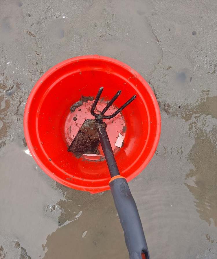 김치통 담을 큰 비닐, 해루질 갈퀴,