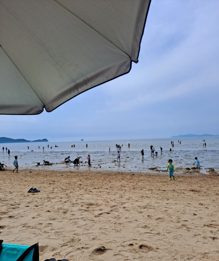 안산 대부도 방아머리해수욕장 갯벌 조개캐기, 해변에 텐트 파라솔? 조개잡기 추천 갯벌(진산리어촌계, 당진왜목마을)