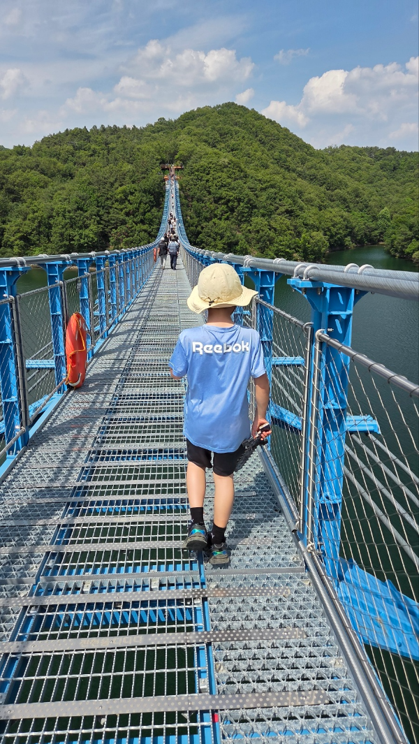 이곳은 초평호의 아름다운 풍경 위로 설치된 대형 출렁다리로,